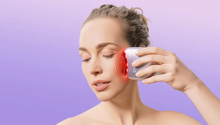 - Forehead: Gently move it across the forehead to reduce tension and improve circulation using the light therapy modes.