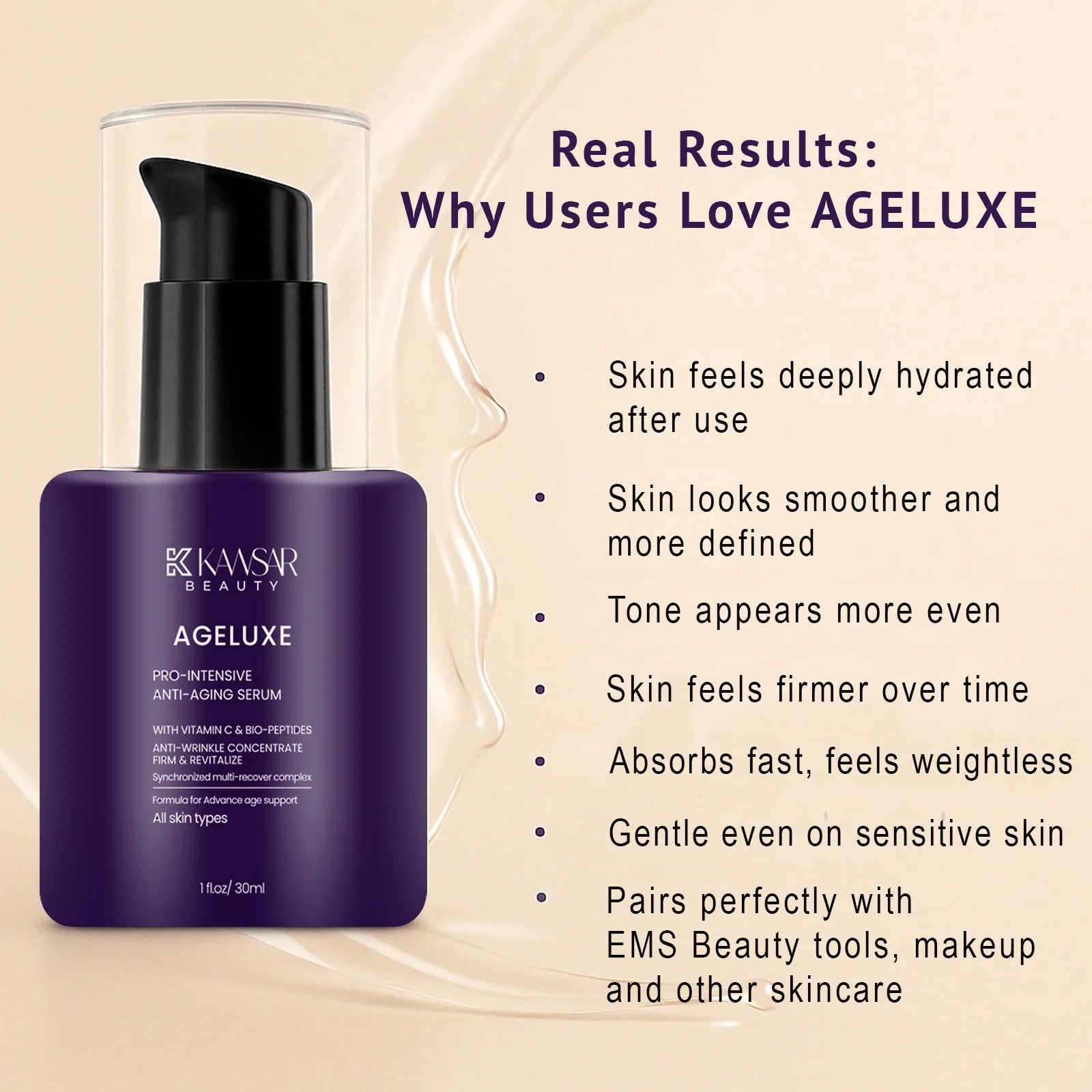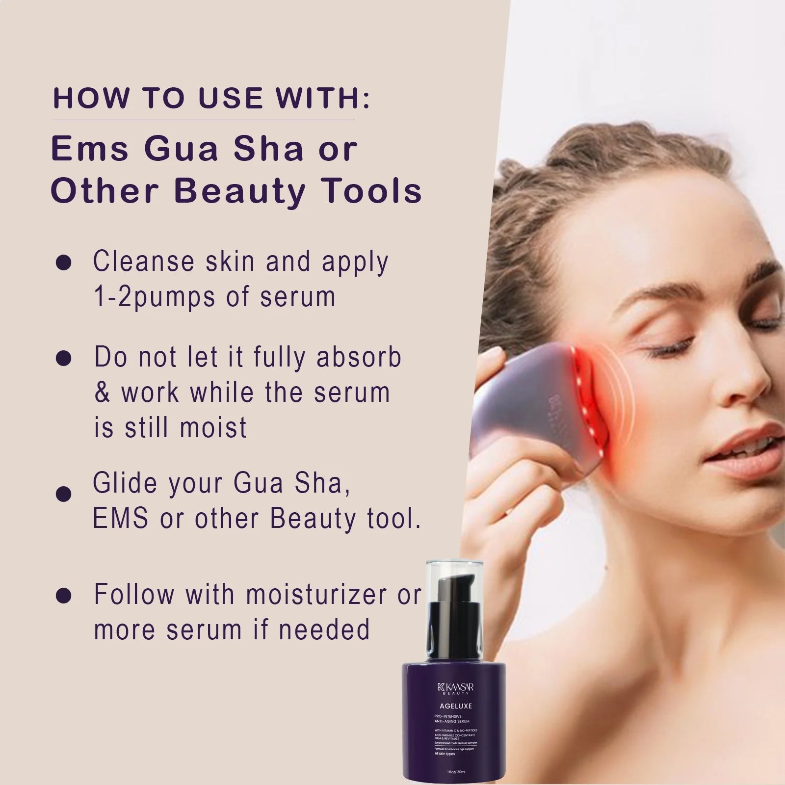 Ageluxe Anti-Aging Serum is an ideal companion to your favorite beauty devices and tools: